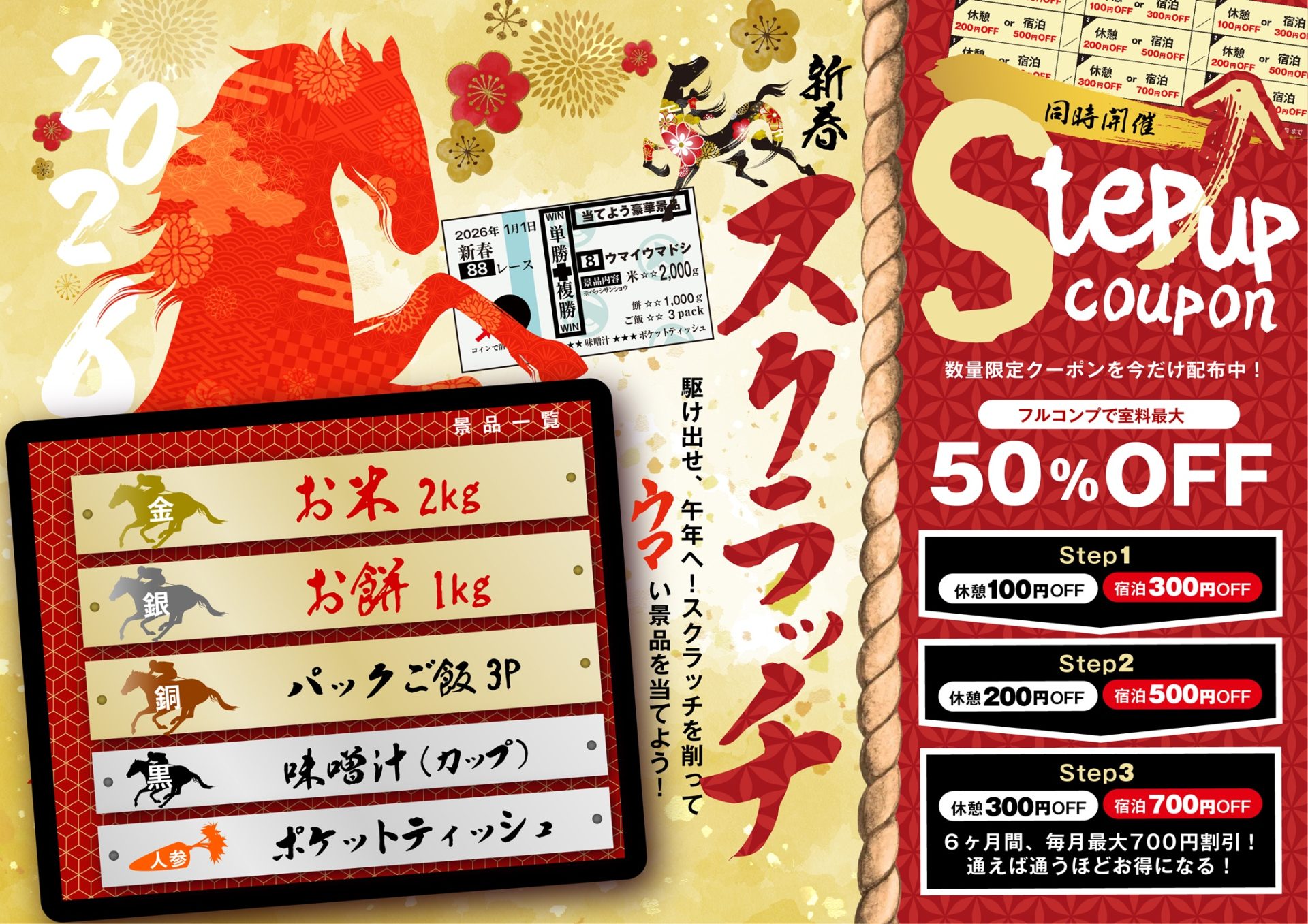 配布されるクーポンも、マンネリ化を防止する為、内容を変えたり 、長期的に使用できるものにします。景品を割引のクーポンにする のは、割引率を上げ、リピーターを増やし、売上に繋げるといった 流れを定着することが目的です。通常価格が高めでもチケットとい う機会を作る事によって、躊躇わずに使用して下さるお客様もいら っしゃいます。(その為、稼働率の高い通常価格が低めの客室を空 けることができます。)